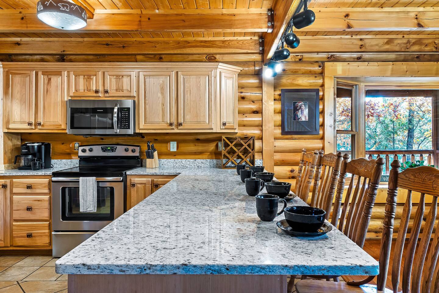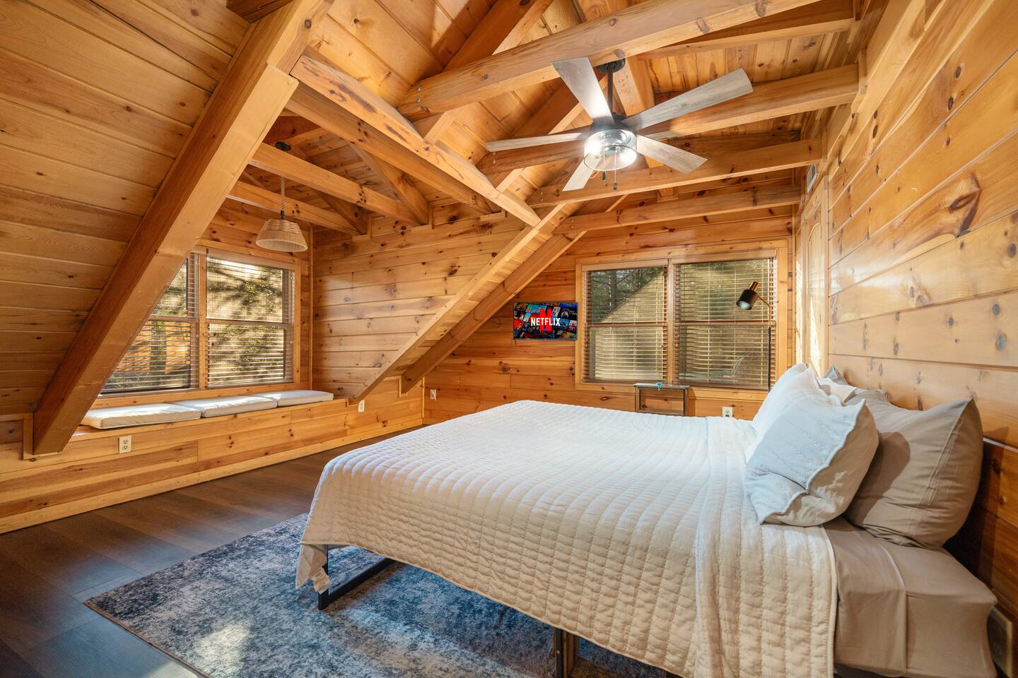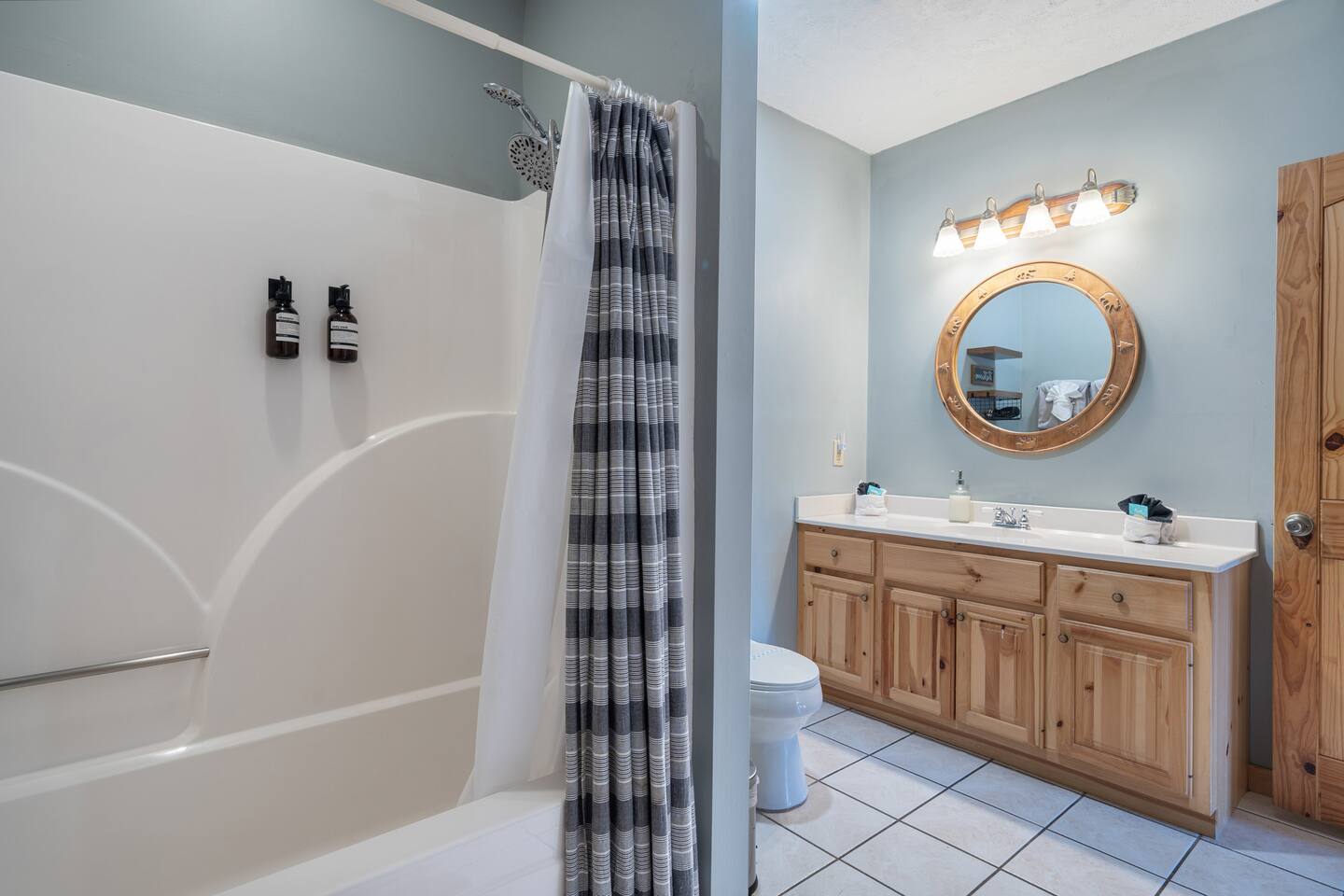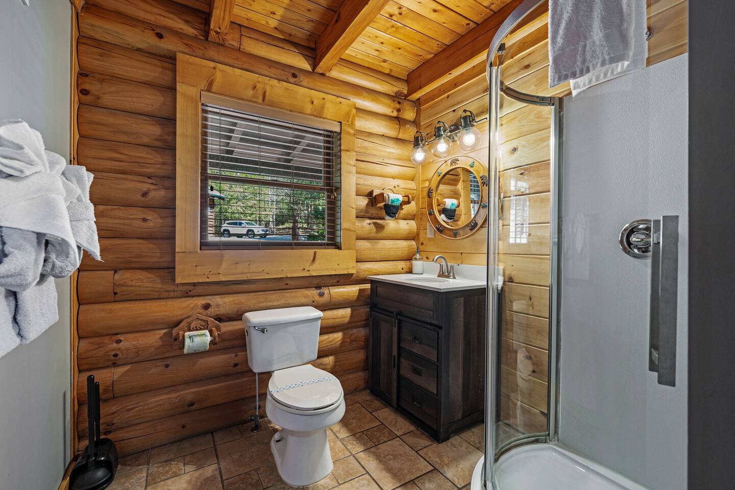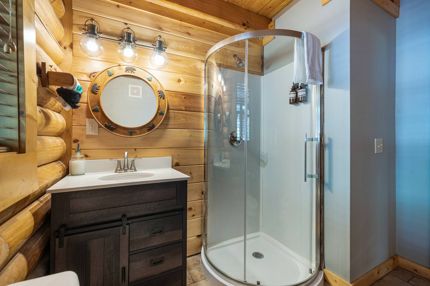 Black Bear Hideaway is a Spacious 4,500 sq' Luxury Indoor Pool Cabin in the private and beautiful Cedar Falls Resort in the Great Smoky Mountains. It is nestled in between plush evergreens on .86 acres, just in front of a catch and release fishing pond. Located 15 minutes drive from Pigeon Forge, 25 minutes from Dollywood Theme Park and 35 minutes from Gatlinburg. Follow us on FB or Insta: smokymoutainsretreats ► PRIVATE HEATED INDOOR POOL The private heated indoor pool sets this cabin apart from many in the area. It is surrounded by a concrete pool deck and comfortable lounge furniture. There is a railing to help guests enter into the shallow end and plenty of room for everybody to splash and play, no matter the season! This is a private indoor pool meaning it is only accessible to our guests. It is located right at the entrance of the cabin and you can use it all year long (heated). ► BEDROOMS With 3 spacious levels and plenty of room to spread out inside and out, this beautiful log cabin can sleep 16 guests with its 5 large bedrooms & 1 kids room. Main Level: - 1 Master bedroom with 1 King size bed & en-suite bathroom – sleeps 2 - 1 full bathroom Upper Level: - 1 Master bedroom with 1 King size bed and an in-suite bathroom – sleeps 2 - 1 Bedroom with 1 King size bed that shares a full bathroom – sleeps 2 - 1 Bedroom with 1 Queen size bed that shares a full bathroom – sleeps 2 Lower Level: - 1 Bedroom with 2 Queen beds & 2 Twin beds that shares a full bathroom – sleeps 6 - 1 Kids room with one twin bunk beds and many toys – sleeps 2 ► KITCHEN The kitchen is equipped with all the cookware, cutlery, and appliances you need to prepare delicious meals during your stay. Refrigerator, stove, microwave, dishwasher, toaster, blender, tea kettle, Crockpot, Keurig Duo with carafe & single serve pod coffee maker. The dining table comfortably seats 10-12, and there are 4 additional stools at the large kitchen island so everyone in your group can enjoy meals together. ► OUTDOOR GRILL There is a private Gas Grill. We provide the Propane Gas. ► OUTDOOR SPACE After a day of hiking and sightseeing, you have a lot of options to chill: *soak in the private hot tub *enjoy the fresh mountain breeze and beautiful views from our wrap-around balconies/porches *relax by the fire pit. Community fire pit is only 2 min walking distance *take a dip in the pool. Community pool is only 2 min walking distance (open May-September) *fish in the Catch and release pond right underneath the cabin *go for a walk in the Nature trail located within the Community *bring your little ones to the brand new Playground (2 min walking distance) ► FIRE PIT The community fire pit is conveniently located just 2 minutes walking distance. If you plan on using the fire pit, just remember to bring some fire wood (you can find this at the supermarket close by if needed - 7 min drive). ► GAME ROOM All ages will fall in love with this fun space! The room has a billiard table, an air hockey table, a foosball, 2 multi-arcade games and a bar area. You will find an additional full-size refrigerator by the game room to have all your cool drinks available. ► THEATER ROOM Next to the game room you will find the in-home Cinema for a movie night with the family & friends. ► PETS We are a pet friendly cabin and you can bring up to 3 dogs as long as they are house broken/potty trained. We welcome all breeds of dogs and have no restrictions on weight. The pet fee is $175 for the whole stay. ► KIDS TOYS As parents ourselves, we know how convenient it can be to book a place with kids toys, that is why we wanted to provide that experience to our own guests. Please note that all kids toys found in the home are for different ages and the parents or responsible adults will be held liable for the selection of toys used by their children. ► INTERNET/CABLE High Speed Wireless Internet Smart TVs in the living room/game room/theater room as well as in each bedrooms. ► LAUNDRY Full size washer and dryer. ► AMENITIES Our cleaning service provides start-up supplies including: paper towels, dish soap, dish washer soap, kitchen trash can liners, toilet paper, hand soap and bathroom trash liners. Depending on the length of your stay, you may need to purchase additional items when the initial supply runs out. ► PRIVATE PARKING Parking for up to 5 vehicles in the driveway. ► ENTRY The front door is equipped with an electronic keypad, we will send a personalized door code. ► SMOKING No Smoking indoors. You can smoke on the decks though. ** Please favorite the property by clicking "save" or "heart shape" in the upper right-hand corner, this will help you find it again and share with others **