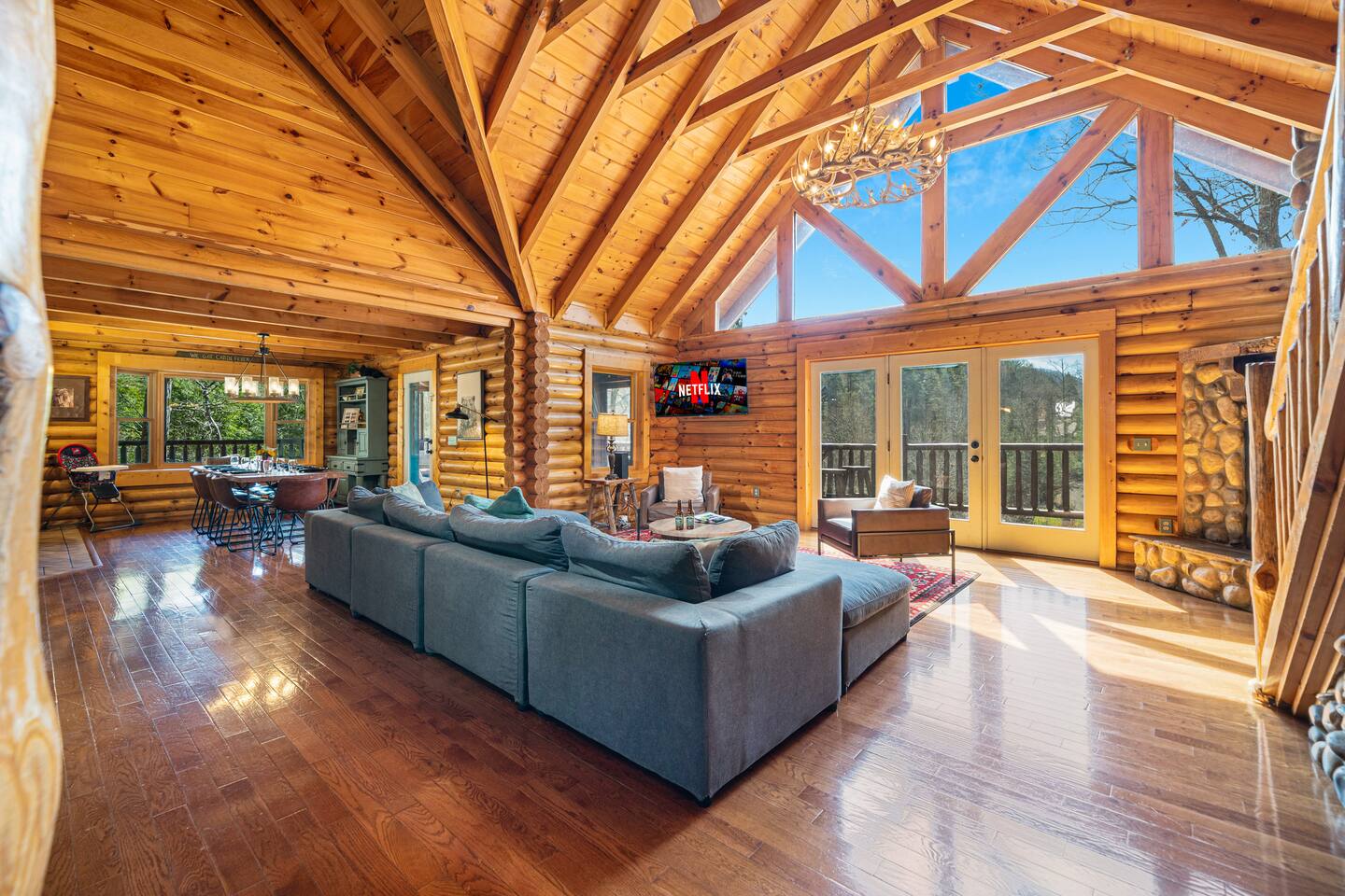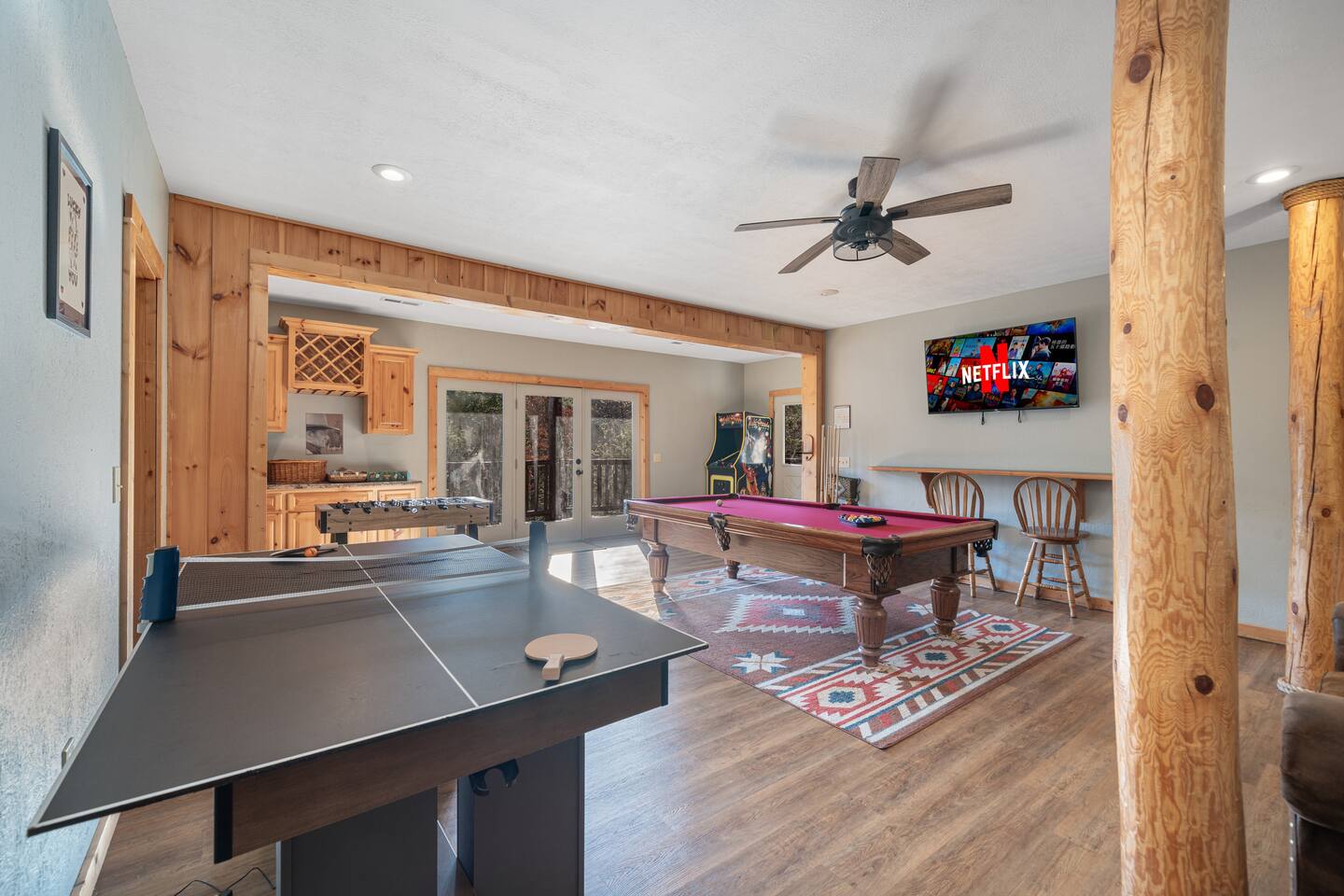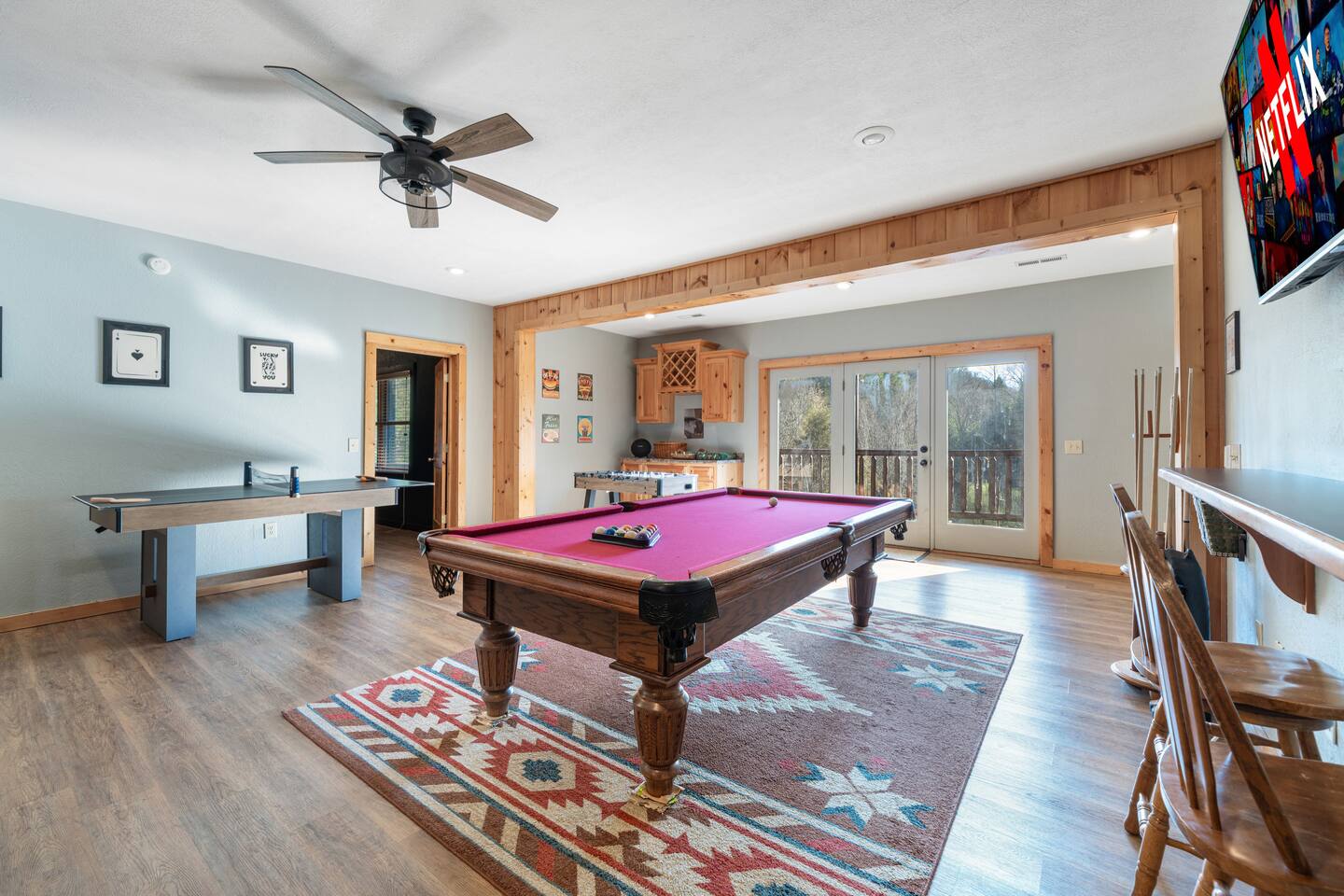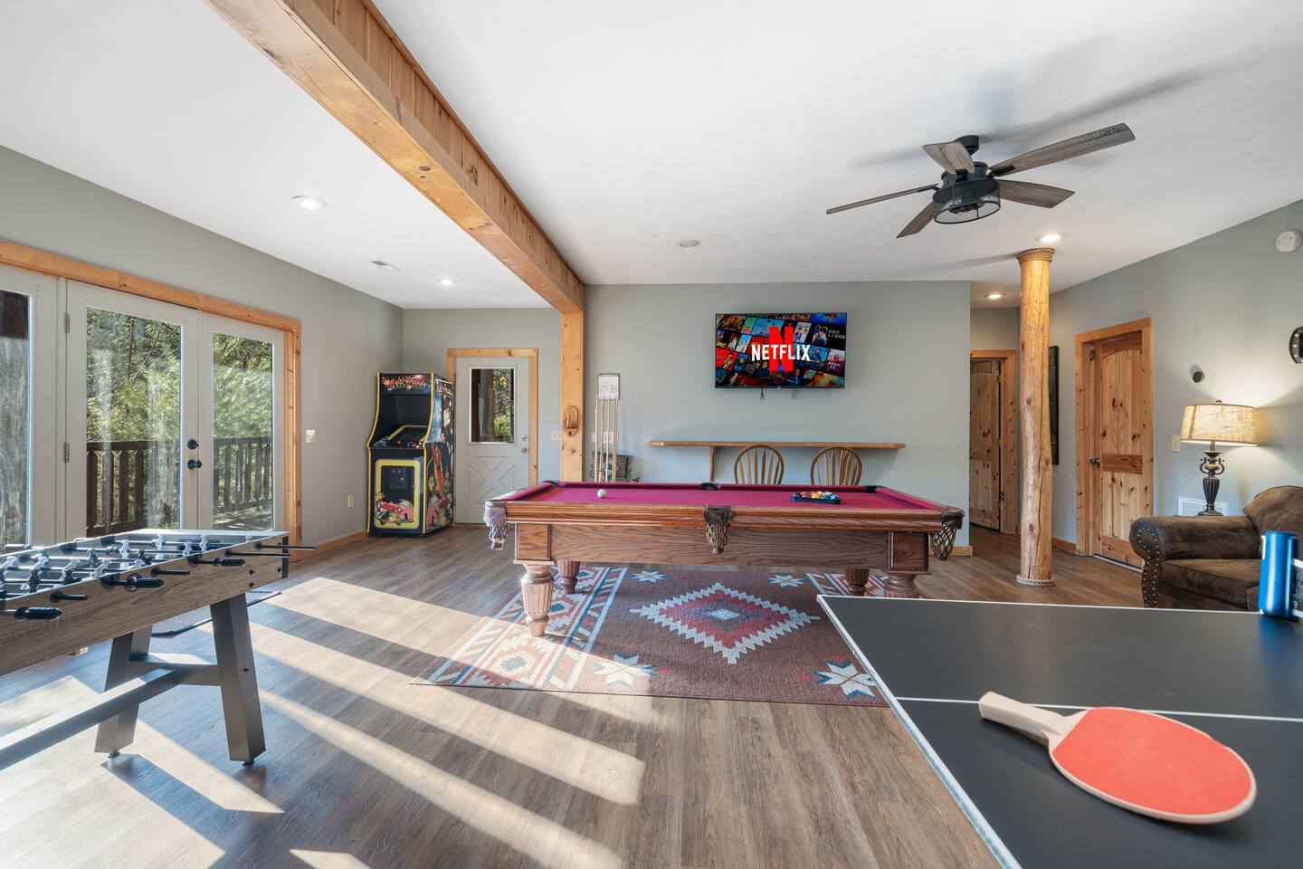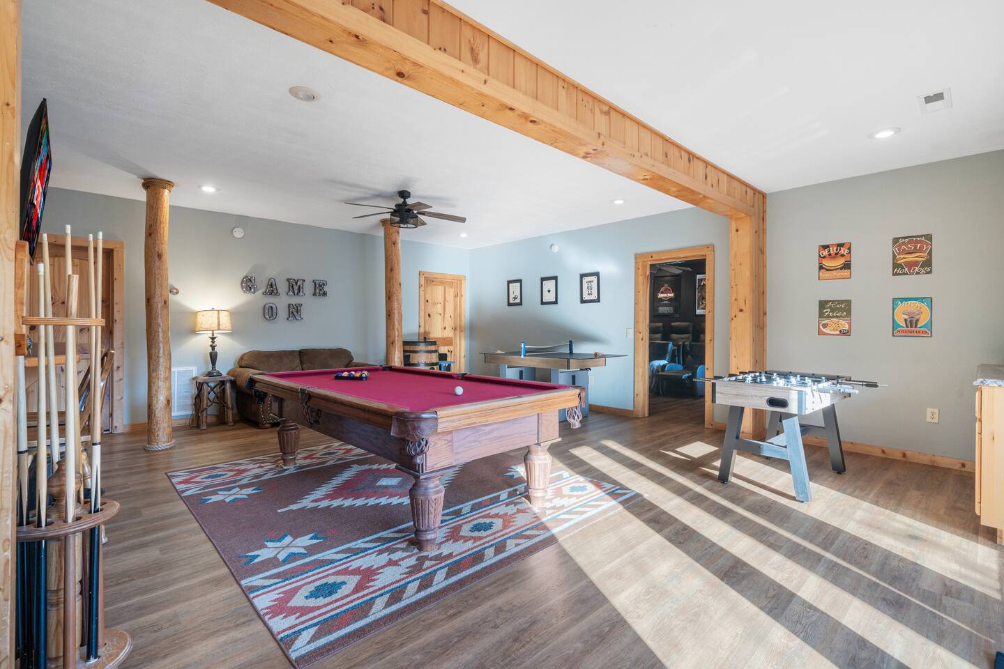 Guests will enjoy the entire cabin/private heated pool/private theater room/private game room/private hot tub. Guests will enjoy all of the amenities that the Cedar Falls Resort offers including a community pool, Playground, Picnic area with Fire pit, Basketball court, Nature trail, Catch and release pond.