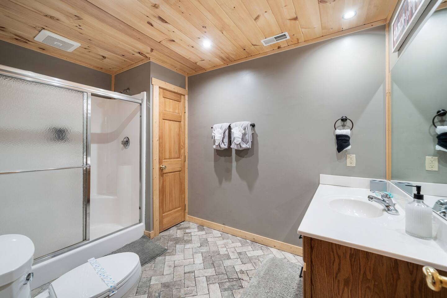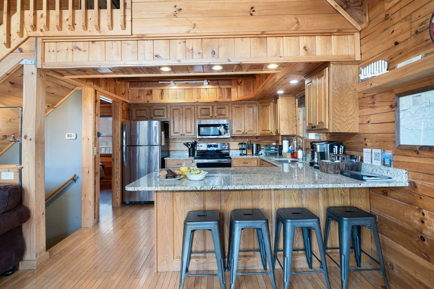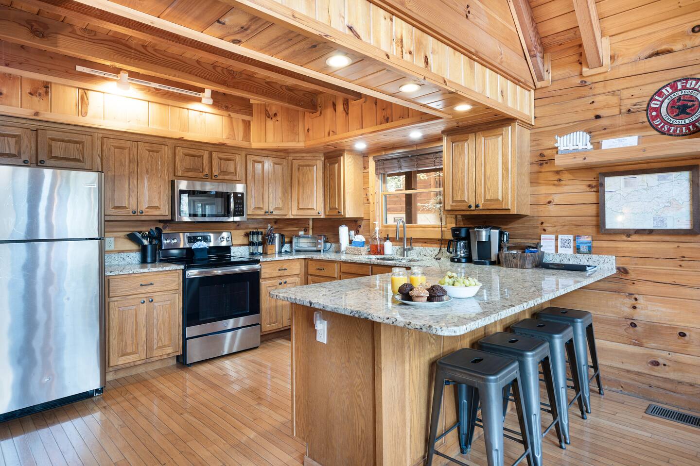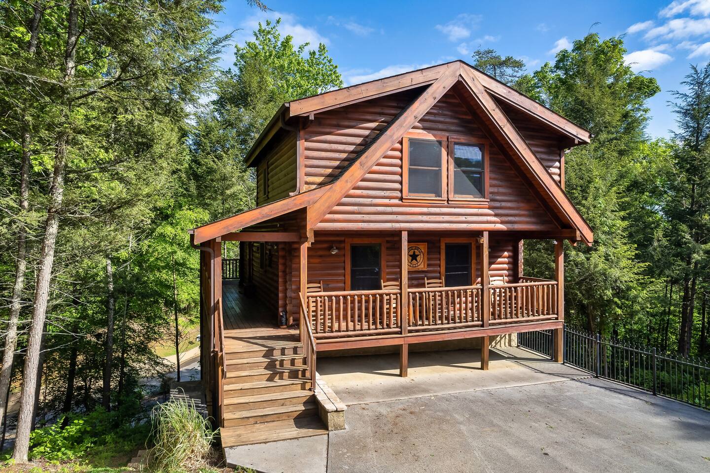 "Forge Ahead" is a Luxury 2,200 sqft log Cabin located in the beautiful Brookstone Village Resort with access to a community pool. Follow us on FB or Insta: smokymoutainsretreats ► COMMUNITY POOL Community pool is conveniently located just 3 minutes walking distance from the cabin. It is open from May-September. ► BEDROOMS This three-story cabin accommodates up to 14 guests. Main Level: - 1 Master bedroom with a King size bed & an in-suite bathroom (sleeps 2). - The living room can turn into a sleeping space with the queen sofa bed (sleeps 2). Lower Level: - 1 bedroom with a King size bed and a full bathroom (sleeps 2). Upper Level: - 1 bedroom with a Queen size bunk bed (sleeps 4) and an in-suite bathroom. - 1 bedroom with a Full size bunk bed (sleeps 4) and a bathroom. ► KITCHEN The kitchen is equipped with all the cookware, cutlery, and appliances you need to prepare delicious meals during your stay. Refrigerator, stove, microwave, dishwasher, toaster, blender, tea kettle, Crockpot, Keurig Duo with carafe & single serve pod coffee maker. The dining table comfortably seats eight, and there are four additional stools at the large kitchen island so everyone in your group can enjoy meals together. ► OUTDOOR GRILL There is a private Gas Grill. We provide the Gas. ► OUTDOOR SPACE After a day of hiking and sightseeing, you have a lot of options to chill: *soak in the private hot tub *kick back in the rocking chairs and enjoy the fresh mountain breeze *take a dip in the pool. Community pool is only 2 min walking distance (open May to September). ► GAME ROOM All ages will fall in love with this fun space! The room has a billiard table, an arcade game, a lounge area with a large TV where you can watch your favorite shows/games. There is also an assortment of board game & an Xbox. ► PETS We are a pet friendly cabin and you can bring up to 3 dogs as long as they are house broken/potty trained. We welcome all breeds of dogs and have no restrictions on weight. The pet fee is $150 for the whole stay for up to 3 dogs (the fee is not per dog). ► INTERNET/CABLE High Speed Wireless Internet Smart TVs in the living room/game room as well as in each bedrooms. ► LAUNDRY Full size washer and dryer. ► AMENITIES Our cleaning service provides start-up supplies including: paper towels, dish soap, dish washer soap, kitchen trash can liners, toilet paper, hand soap and bathroom trash liners. Depending on the length of your stay, you may need to purchase additional items when the initial supply runs out. ► PRIVATE PARKING Flat parking for up to 3 vehicles in the driveway. ► ENTRY The front door is equipped with an electronic keypad, we will send a personalized door code. ► SMOKING No Smoking indoors. You can smoke on the decks though. We will always strive to obtain a 5-star ★★★★★ review from all our guest and can’t wait to host your next holidays and make them UNFORGETTABLE! *** Please favorite the property by clicking "save" or "heart shape" in the upper right-hand corner, this will help you find it again and share with others ***