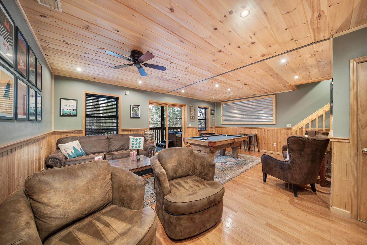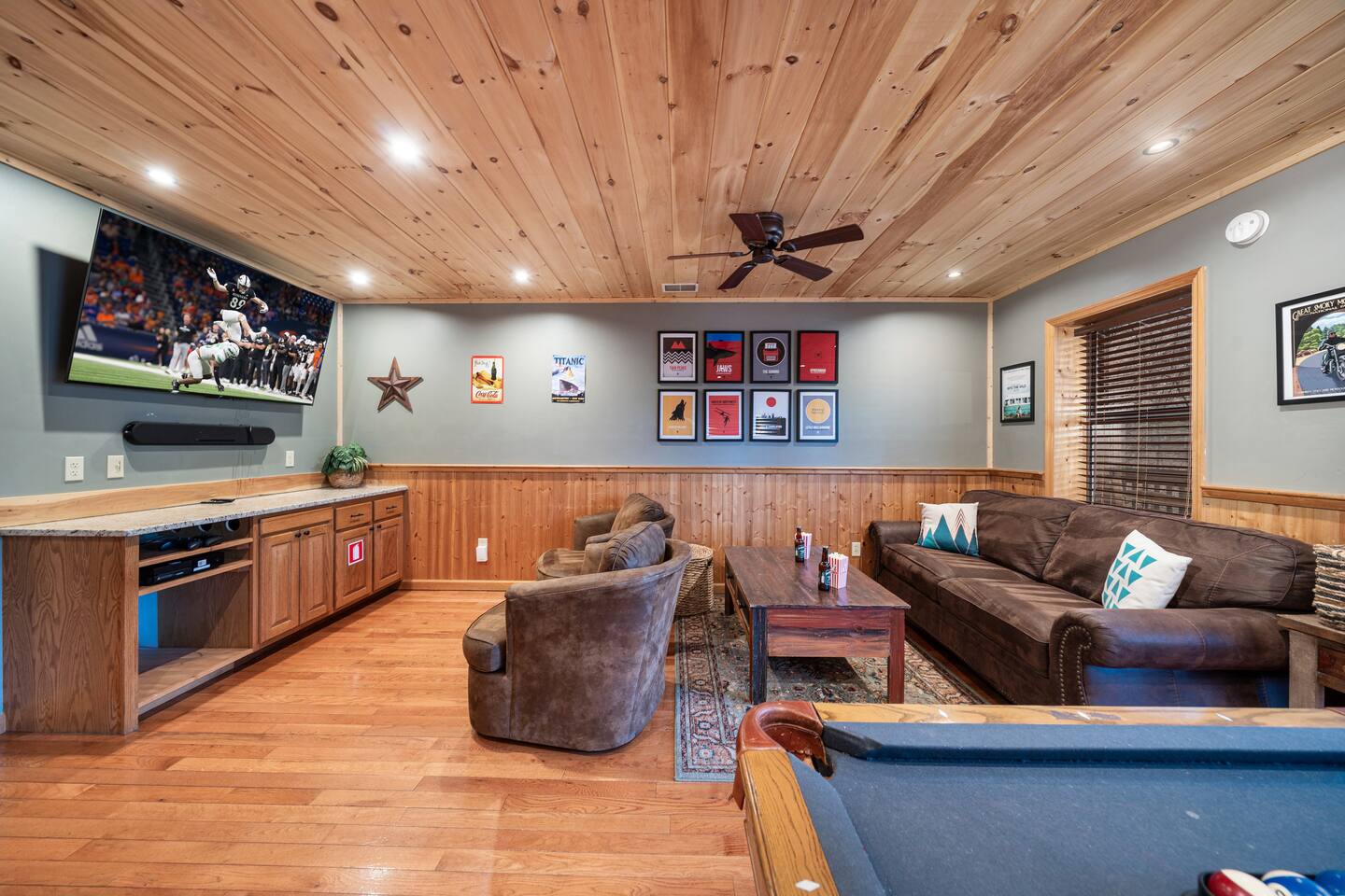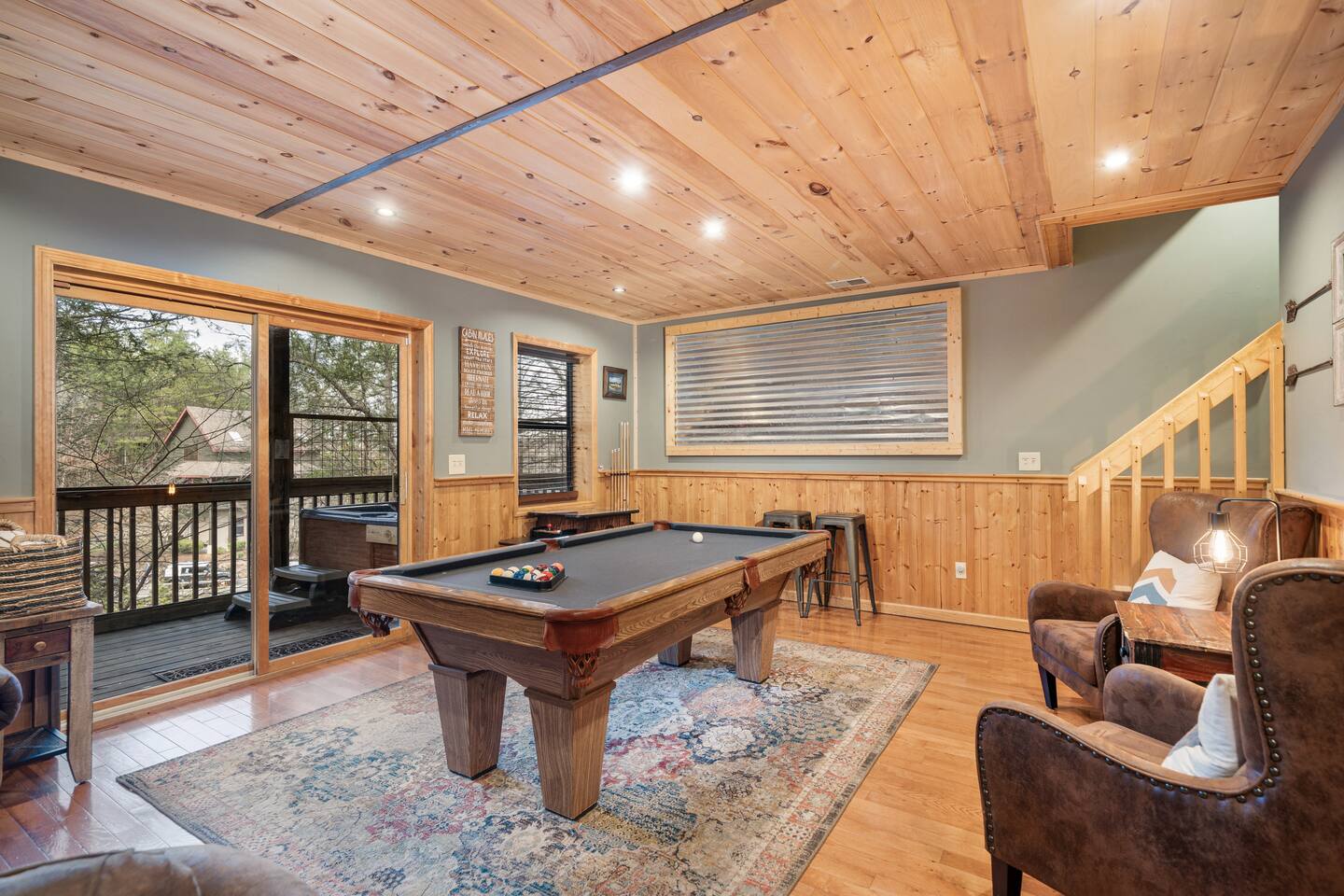 • LOCATION! centrally located in Pigeon Forge (Smoky Mountains) • 2 min drive to Pigeon Forge Parkway! • 8 min drive to Dollywood • Hot tub • Game Room w/ billiard table & arcade games • Community pool just 2 min walking distance from the cabin • 4 bedrooms / 4 bathrooms • Sleeps up to 14 guests • Pet friendly (up to 3 dogs) • Located within the renowned Brookstone Village Resort • Parking for 3+ vehicles • Fully stocked kitchen • All TV’s with 125+ channels and High Speed Wifi • SuperHost