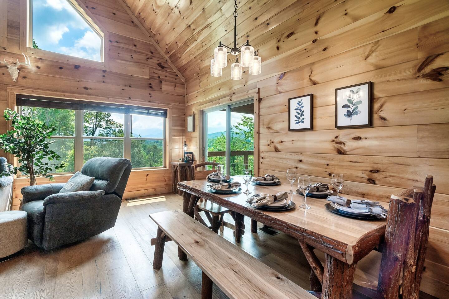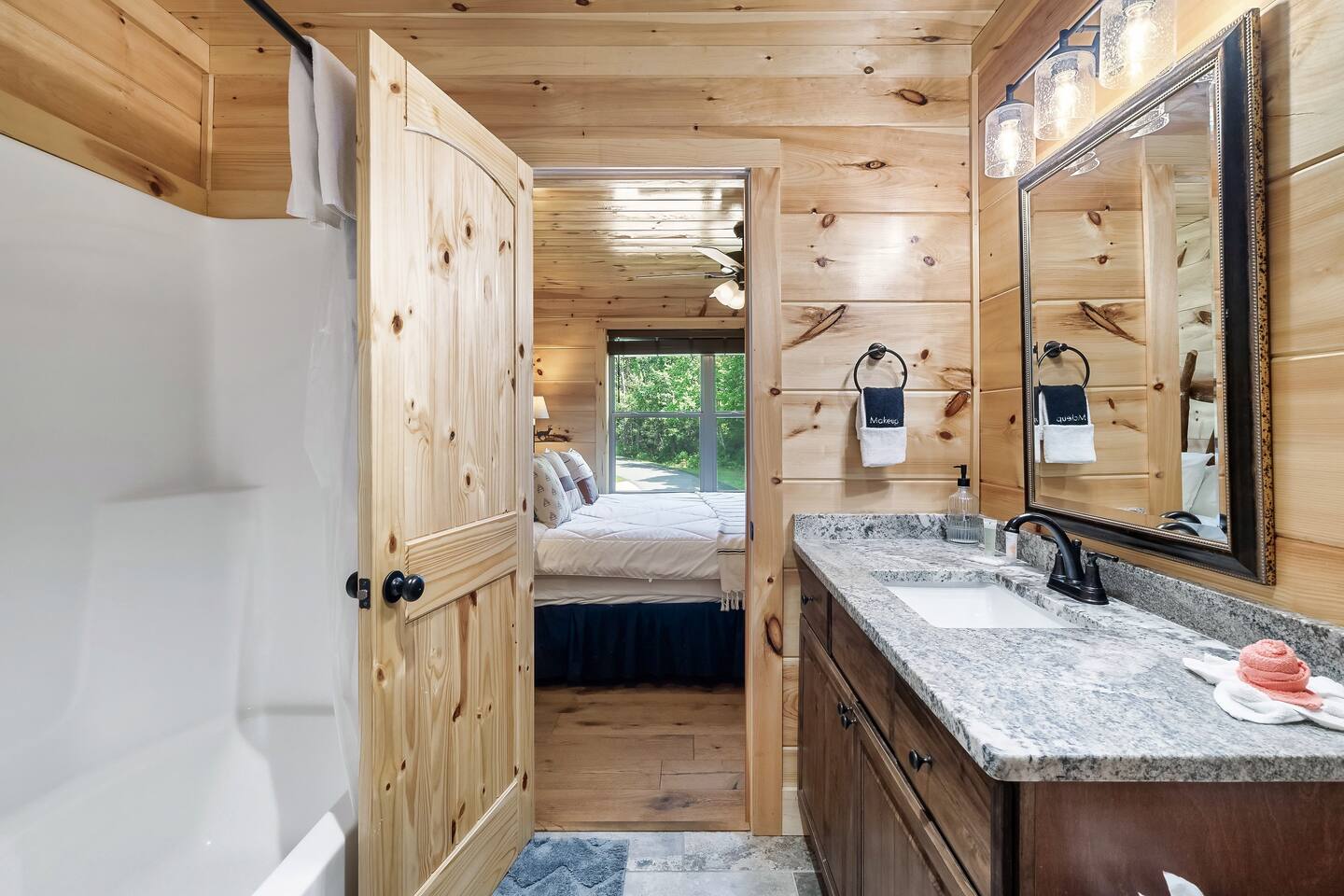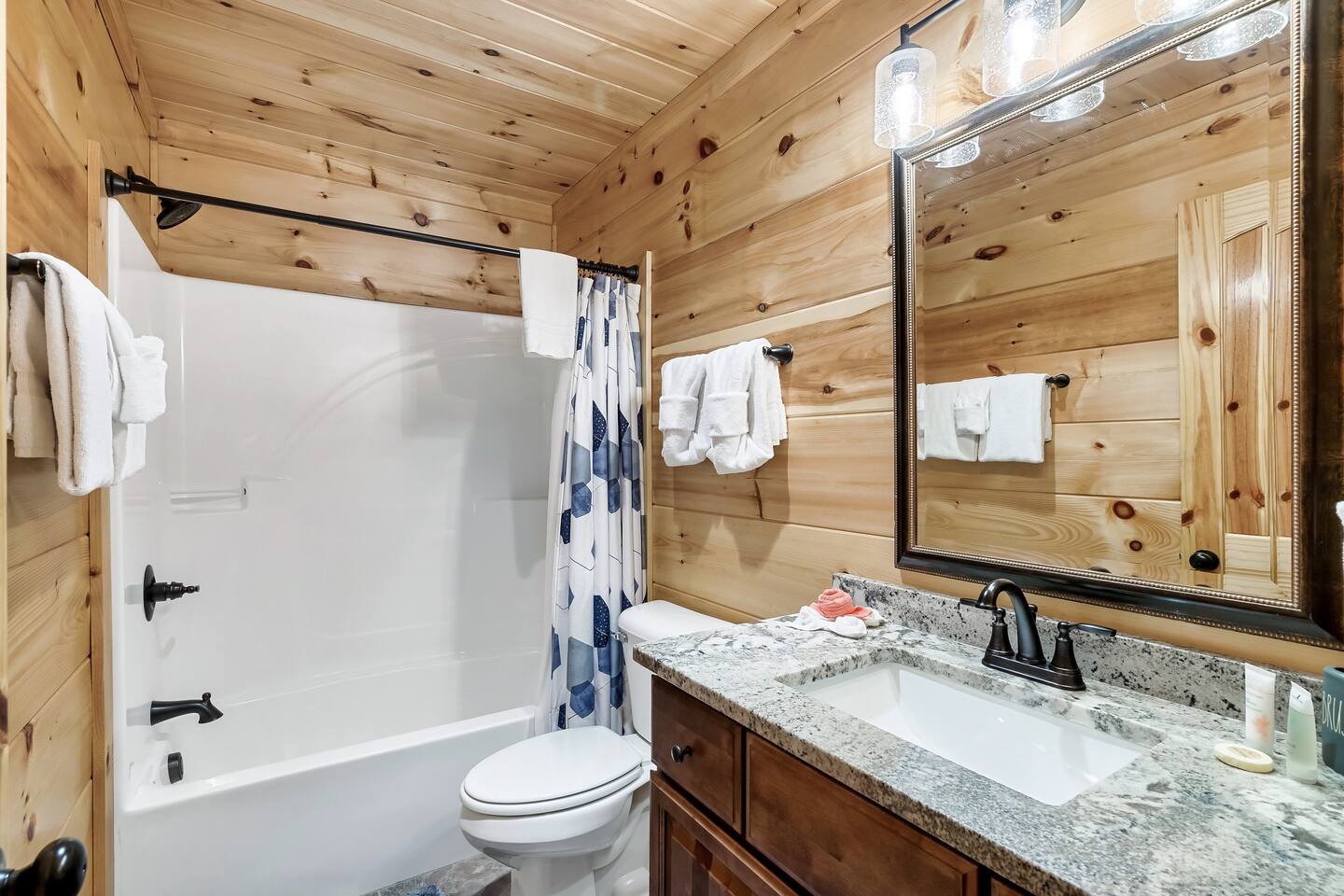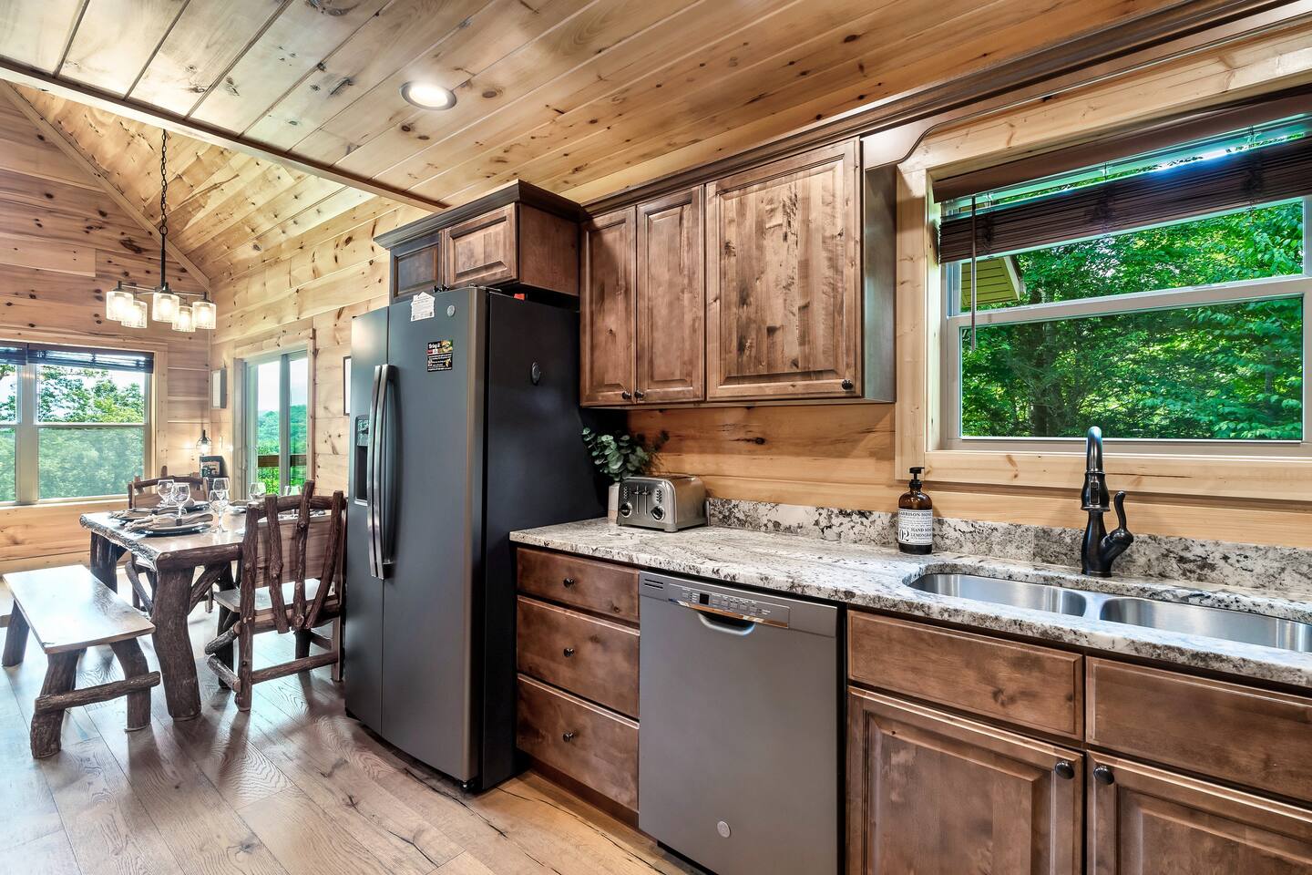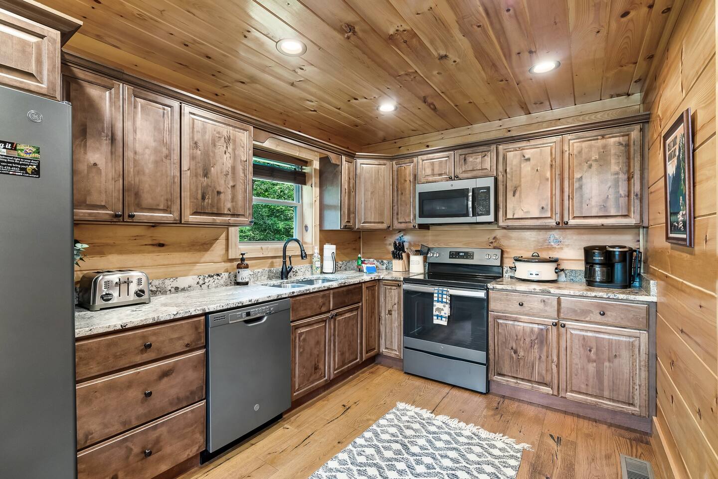 This modern mountain cabin built in 2020 features real stonework and cedar shakes Hardie boards. Perfect for families & groups of friends, everyone can spread out between an expansive Great Room with cathedral ceilings, an entertainment-packed game room, and two relaxing decks with dramatic mountain views. Follow us on FB or Insta: smokymoutainsretreats ► BEDROOMS This three-story cabin accommodates up to 10 guests between the three bedrooms (one on each level) and two queen-size sleeper sofas (one in the living room and one in the game room). You will find a TV in every room. Upper floor: Master Bedroom with a King size bed & en-suite bathroom – sleeps 2 Main floor: Master Bedroom with a King size bed & en-suite bathroom – sleeps 2 Lower floor: Master Bedroom with a King size bed & en-suite bathroom– sleeps 2 Great room: Queen-size sleeper Sofa – sleeps 2 Game room: Queen-size sleeper Sofa – sleeps 2 See pictures of the floor plan in the listing (last pictures). ► KITCHEN The kitchen is equipped with all the cookware, cutlery, and appliances you need to prepare delicious meals during your stay. Refrigerator, stove, microwave, dishwasher, toaster, blender, tea kettle, Crockpot, Keurig Duo with carafe & single serve pod coffee maker. The dining table comfortably seats eight. ► OUTDOOR GRILL There is a private Gas Grill. We provide the Propane Gas. ► OUTDOOR SPACE After a day of hiking and sightseeing, you have a lot of options to chill: *relax by the fire pit *soak in the private hot tub *kick back in the rocking chairs and enjoy the fresh mountain breeze and impressive views towards Mt. LeConte. ► FIRE PIT Our private fire pit is located right by the cabin and offers nice Mountain views. There are 6 outdoor chairs. If you plan on using the fire pit, just remember to bring some fire wood (you can find this at the supermarket next door if needed - 5 min drive). ► GAME ROOM You, your family and guests will love playing in the game room outfitted with an air hockey table, foosball table, video arcade games, and a home theater area for movie nights. There is also an assortment of board games. ► PETS We are a pet friendly cabin and you can bring up to 3 dogs as long as they are house broken/potty trained. We welcome all breeds of dogs and have no restrictions on weight. The pet fee is $150 for the whole stay for up to 3 dogs (the fee is not per dog). ► INTERNET/CABLE High Speed Wireless Internet Smart TVs in the living room/game room as well as in each bedrooms. ► LAUNDRY Full size washer and dryer. ► AMENITIES Our cleaning service provides start-up supplies including: paper towels, dish soap, dish washer soap, kitchen trash can liners, toilet paper, hand soap and bathroom trash liners. Depending on the length of your stay, you may need to purchase additional items when the initial supply runs out. ► PRIVATE PARKING Flat parking for up to 4 vehicles in the driveway. ► ENTRY The front door is equipped with an electronic keypad, we will send a personalized door code. ► SMOKING No Smoking indoors. You can smoke on the decks though. *** Please favorite the property by clicking "save" or "heart shape" in the upper right-hand corner, this will help you find it again and share with others ***