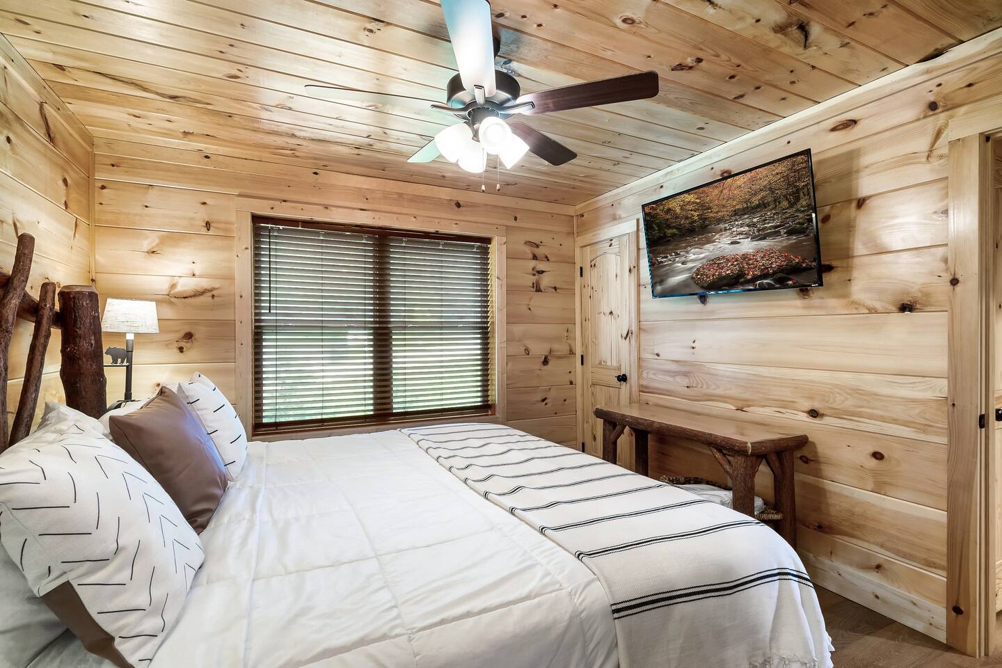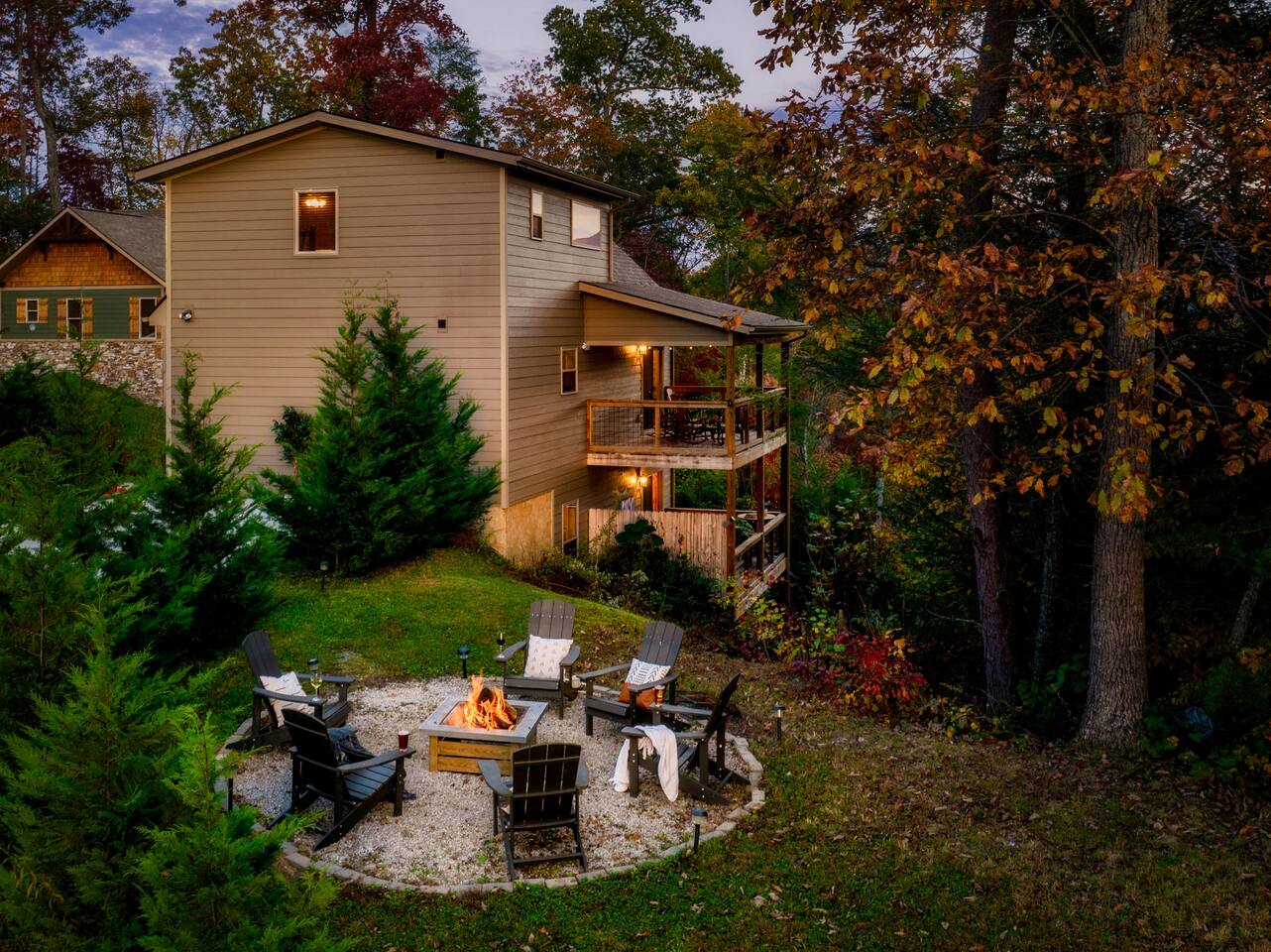 For security reasons, we have placed 2 outside cameras, one is located on the entry porch facing the entrance door and one is located facing the fire pit/street. Ring cameras in place and actively recording. Ring cameras are activated by motion and will record anyone that walks in front of them. These recordings are saved and can be reviewed and shared with the booking platform. If we believe that house rules are being violated, we have the ability to access these cameras in real time. Please remember that you are staying in our home away from home. Please treat our cabin with respect. "Out of our control" problems could arise, please note we will do everything in our power to resolve any issue ASAP, as your comfort means everything to us.