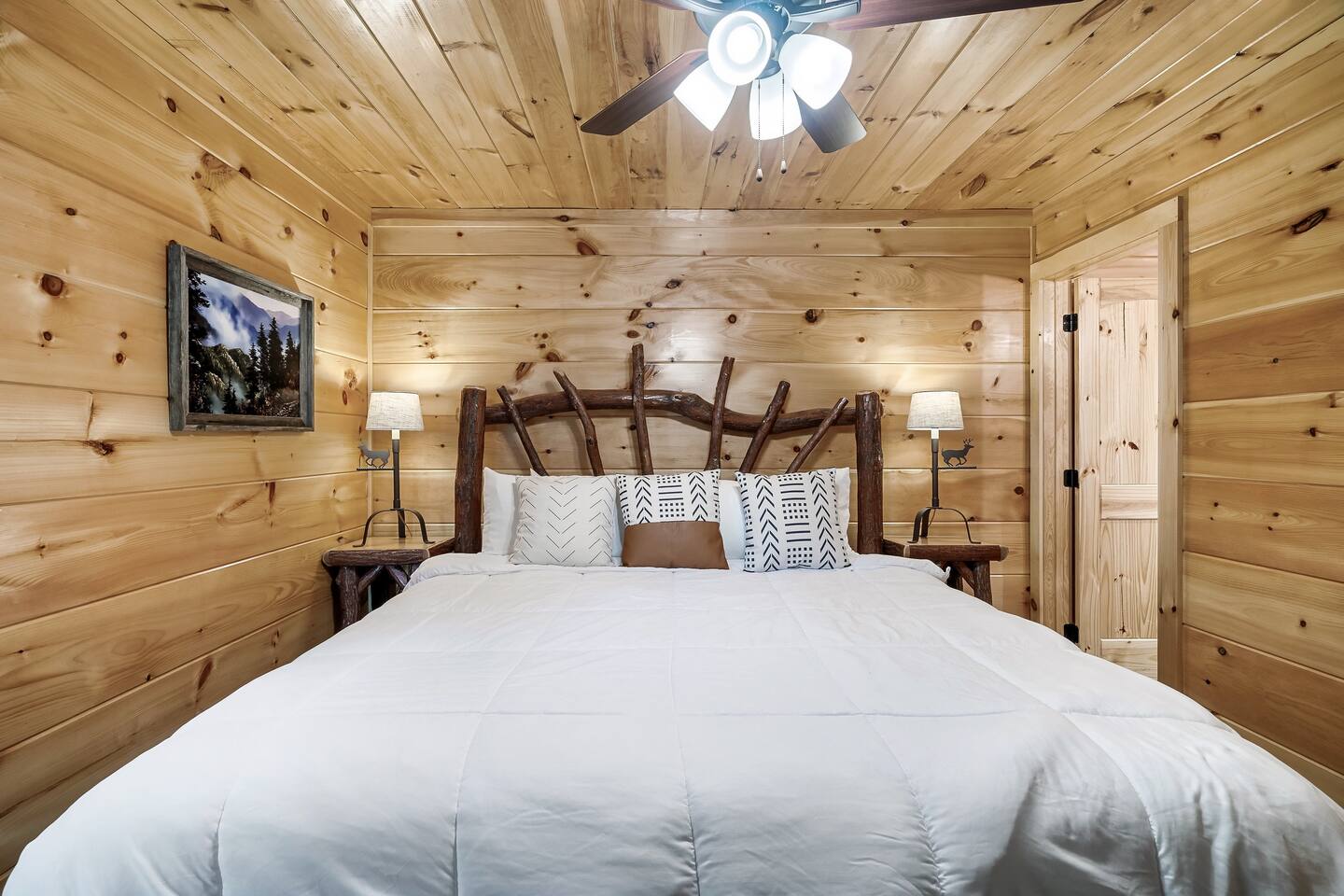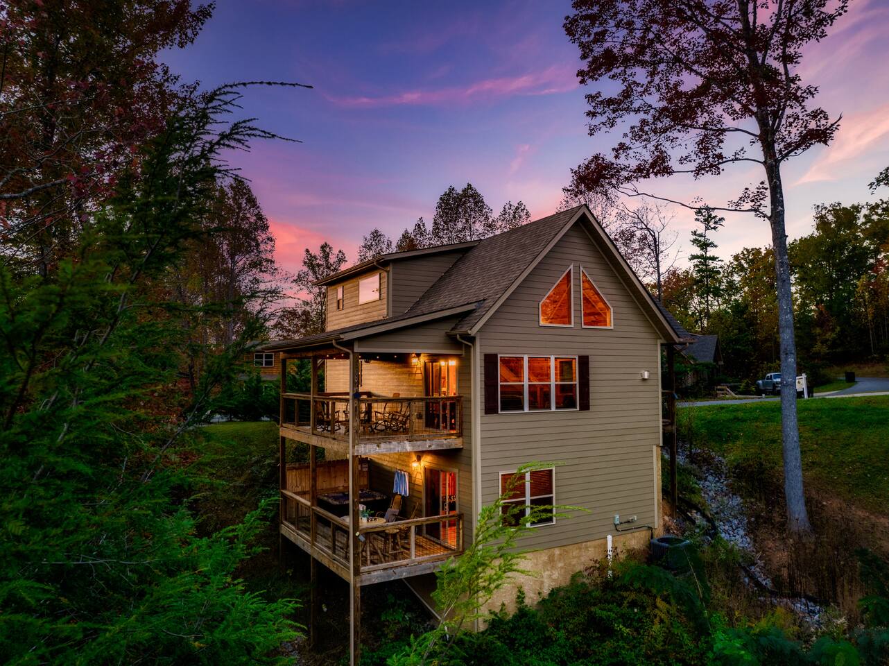 • LOCATION! centrally located in Gatlinburg • Breathtaking Mountain Views • Fire pit & Hot tub • 3 KING suites with their own en-suite bathroom (3 Bathrooms) • Sleeps up to 10 guests • Pet friendly • Game Room with air hockey table, foosball table, arcade games • 8 minutes to downtown Gatlinburg restaurants, shops & attractions • 15 minutes to the Great Smoky Mountains National Park entrance • 20 minutes to Pigeon Forge & Dollywood • Paved roads / No winding roads